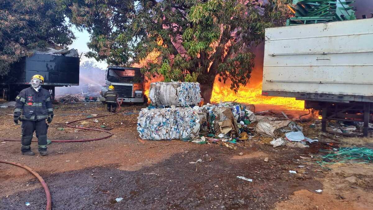 Galpão de reciclagem em Anápolis fica destruído após ser atingido por incêndio