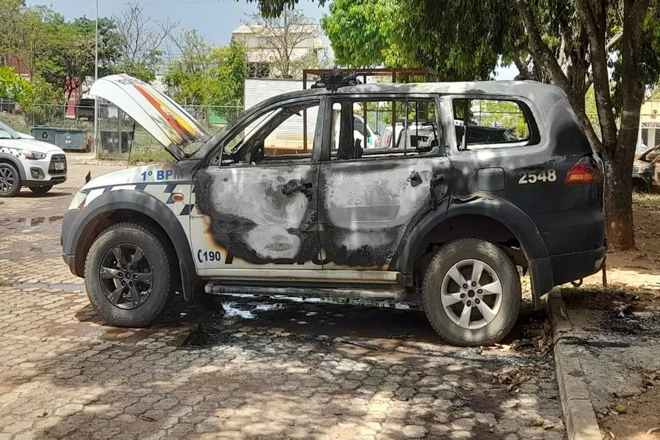 Garota incendeia viatura da PM em pátio de delegacia no DF