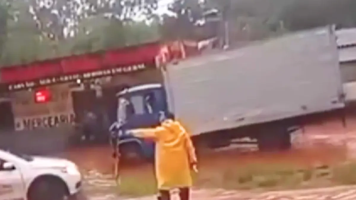 Um guarda civil metropolitano precisou sacar a arma para impedir que motoristas trafegassem por uma área que precisou ser interditada após ser alagada pela forte chuva que caiu na tarde de segunda-feira (5) em Goiânia. O fato aconteceu na avenida Gercina Borges Teixeira, no Setor Vera Cruz, e foi registrado em um vídeo gravado por um morador da região.