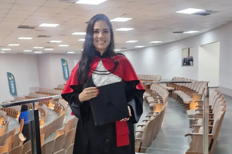 Ao concluir a homenagem, destacou a superação da formanda e a representatividade da sua trajetória. “É a história de uma mulher que, com muita garra, muita luta e muita força, chegou ao curso de Direito e conseguiu concluir essa etapa. Ela representa a força de cada um de vocês”, afirmou.