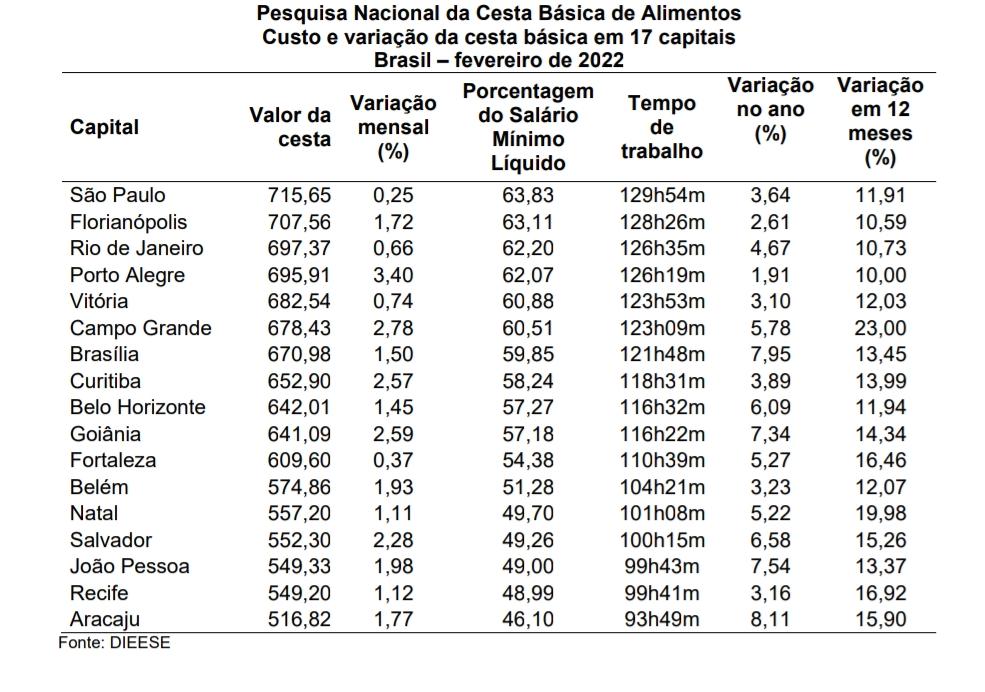 Com base no preço da cesta básica de São Paulo, a mais cara entre as capitais (R$715,65), a pesquisa estipula que o salário mínimo necessário para a manutenção de uma família com quatro pessoas deveria equivaler a R$6.012,18, uma vez que é determinação constitucional que o salário mínimo seja suficiente para suprir despesas com alimentação, moradia, saúde, educação, vestuário, higiene, transporte, lazer e previdência de um trabalhador e de sua família.