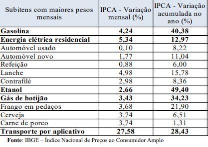 “Nos itens em questão, observa-se o aumento de 4,24% da gasolina, 2,66% do etanol, 6,35% do óleo diesel e do transporte por aplicativo (27,58%)”, destaca o órgão.
