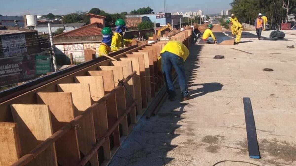Segundo a Secretaria de Infraestrutura, é realizada a concretagem do guarda-rodas sobre o elevado.