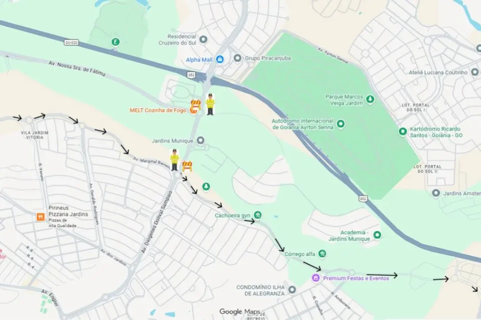 Agora, para quem estiver no sentido Goiânia para Bela Vista, o desvio começa pela Avenida Doutor José Hermano. Na sequência, o motorista deve acessar a Avenida Marginal Barreiro e, por fim, retornar para a GO-020. Entenda: