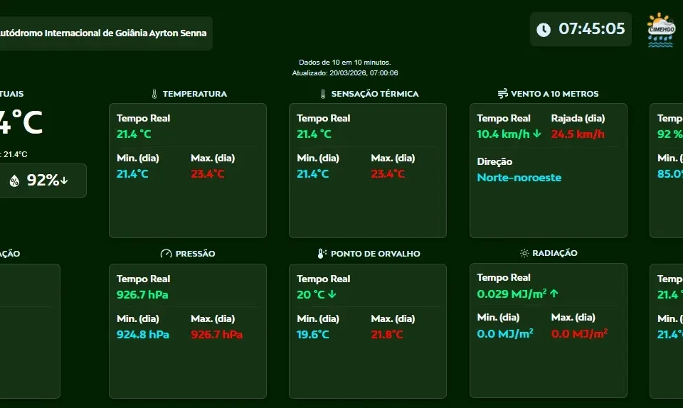 O autódromo de Goiânia ganhou uma nova estação meteorológica que prevê atualizações a cada 10 minutos. A instalação foi pensada para a MotoGP, mas continuará no local após o evento. O investimento foi de cerca de R$ 120 mil. Agora, segundo o Centro de Informações Meteorológicas e Hidrológicas de Goiás (Cimehgo), a capital agora possui 26 pontos de monitoramento de chuva.