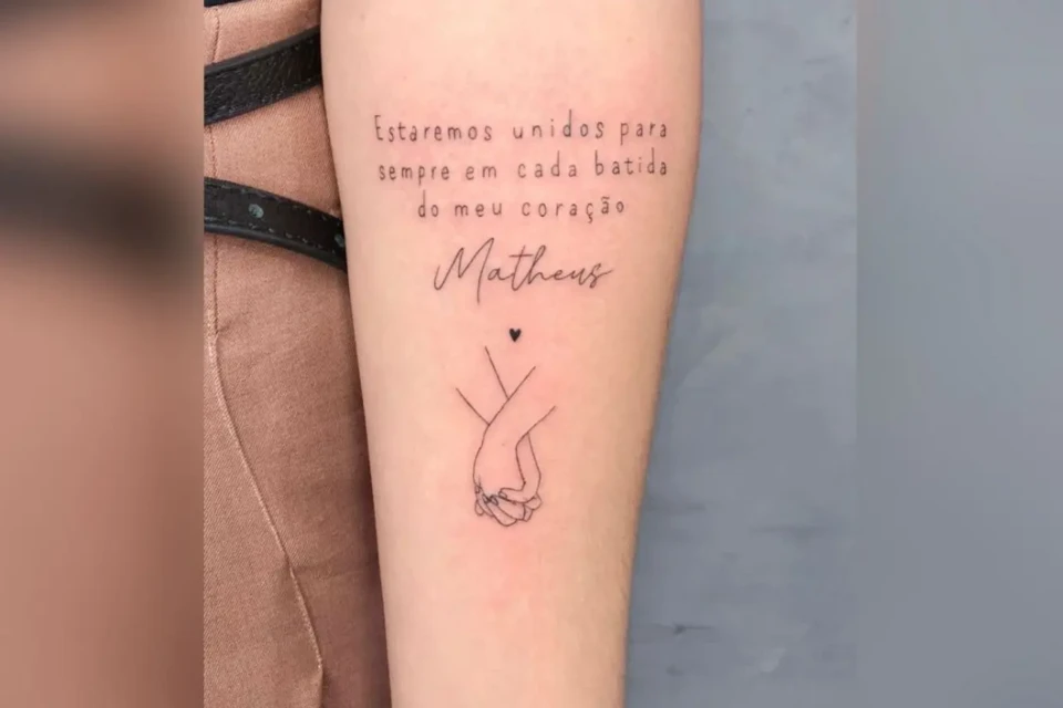 “Estaremos unidos para sempre em cada batida do meu coração. Matheus”, tatuou Ana Karolina.