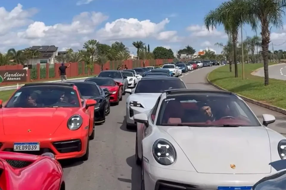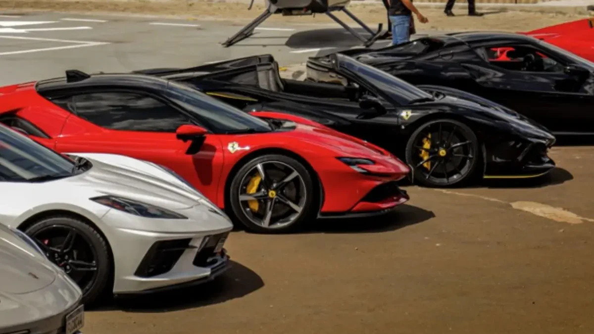 A edição de sábado foi a primeira de 2026 e reuniu 88 veículos de diferentes marcas, além de uma estrutura que incluiu seis helicópteros. Entre os destaques estavam dois modelos Ferrari Purosangue, avaliados em cerca de R$ 10 milhões cada, uma Ferrari SF90 Stradale, estimada em aproximadamente R$ 6 milhões, e uma Ferrari F8 Spider Novitec, considerada extremamente rara, com apenas duas unidades no Brasil.