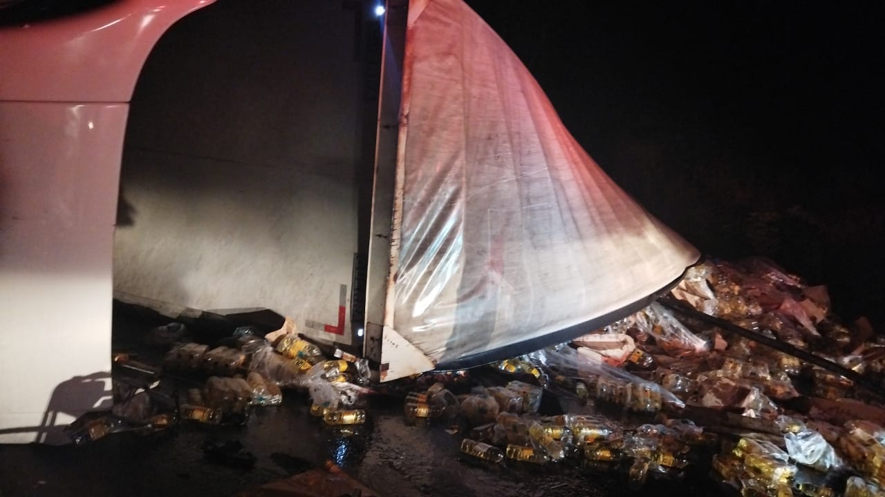 Até o momento não há informações sobre dinâmica do ocorrido e feridos. A Polícia Rodoviária Federal (PRF) afirmou que a carga derramada no local deixou o asfalto escorregadio.