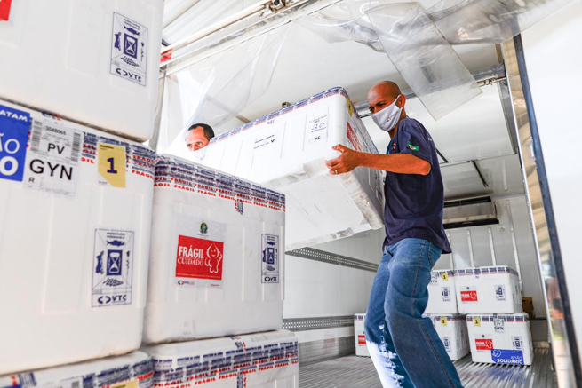 Carregamento da Pfizer chega de madrugada e da AstraZeneca desembarca pela manhã