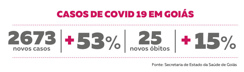 *Os dados foram colhidos no painel digital da SES ao longo da semana. Como as informações são atualizadas a cada 30 minutos, a reportagem coletou os números, dia a dia, às 16 horas. Os dados do governo do estado podem divergir das informações divulgadas pelas prefeituras de cada cidade. A pasta também se pronunciou sobre o número de casos registrados em Rio Verde, que não foram adicionados ao boletim estadual. Ela esclareceu que “os dados estão sendo inseridos pela Secretaria Municipal da cidade nos sistemas oficiais de notificação. Representantes do município informaram que está sendo realizada uma força-tarefa para atualização das informações. À medida que os casos forem inseridos nos sistemas de notificação, eles serão atualizados no painel Covid-19 da SES-GO.”