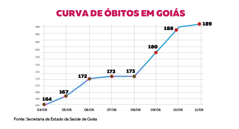 Os números mostram que houve uma desaceleração na Covid-19 no crescimento de casos no estado. No último levantamento semanal feito pelo Mais Goiás, que apurou dados publicados entre os dias 28 de maio e 4 de junho, o crescimento foi de 62,71%. Entretanto, o aumento continua maior do que nas duas semanas anteriores. Entre os dias 21 e 28 de maio, o percentual foi de 43,24%. Na semana anterior (dias 14 a 21) o aumento foi de 51,44%.