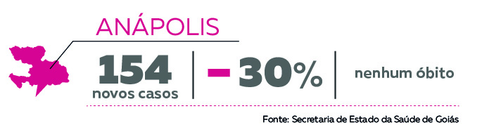 Em Anápolis, foram confirmados 154 novos casos, o que representa um aumento de 36,86%. Na semana anterior, o crescimento foi de 91,92%. Já entre os dias 4 e 11 de junho, o acréscimo apurado foi de 45,25%. De acordo com a SES, o número de casos era de 6 e agora é de 5**.