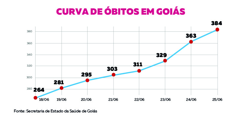 Os números mostram que a doença se espalhou com menor velocidade no território goiano com relação à semana anterior. No último levantamento semanal feito pelo Mais Goiás, que apurou dados publicados entre os dias 11 e 18 de junho, o crescimento foi de 73,67%. O aumento também é menor do que o apurado entre os dias 4 e 11 de junho (53,21%) e do que o levantado entre os dias 28 de maio e 4 de junho (62,71%).