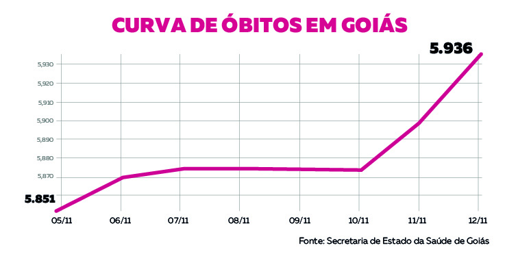 Os números mostram que o aumento de casos foi menor do que o registrado na semana passada. No último levantamento semanal feito pelo Mais Goiás, que apurou os dados registrados entre os dias 29 de outubro e 5 de novembro, o crescimento foi de 2%. Entretanto, a alta é menor do que o apurado entre os dias 22 e 29 de outubro, que registrou 3,6%.