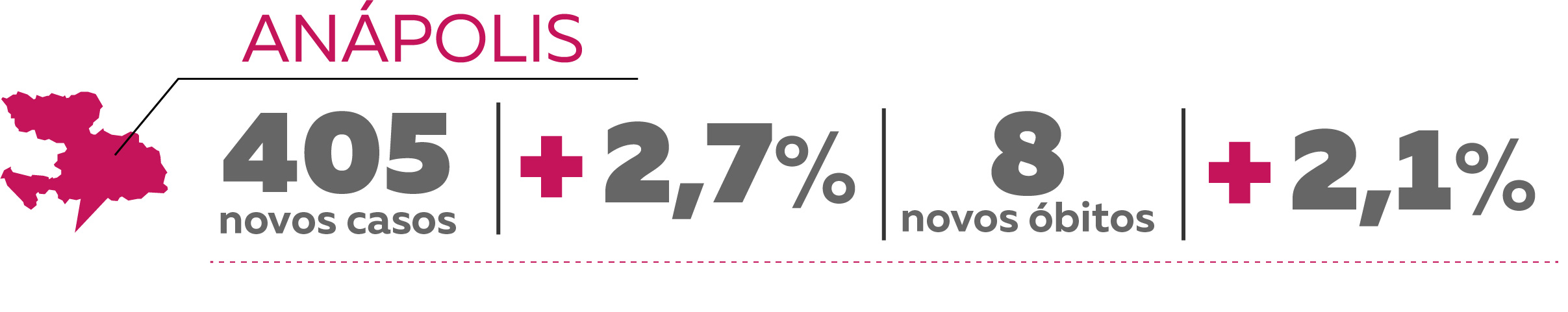Em Anápolis, o número de casos de coronavírus na cidade saiu de 15.095 para 15.500, um crescimento de 2,7% no período. O percentual é menor do que o que foi notado no período anterior (3,3%). Foram registrados 8 óbitos no período e o crescimento foi de 2,1%. Na semana anterior o aumento foi de 1,8%.