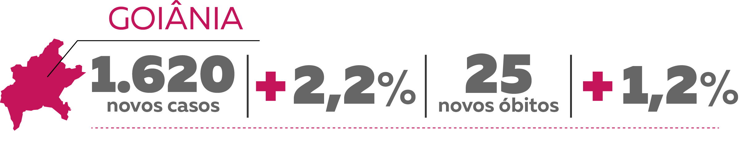 Em Goiânia foram confirmados 1.620 novos casos em uma semana, o que representa um aumento de 2,2%. Na semana anterior, o crescimento foi de 2,7%. O número de mortes na cidade saiu de 1.947 para 1.972, um acréscimo de 1,2%. Na semana passada, o aumento foi de 1,9%.