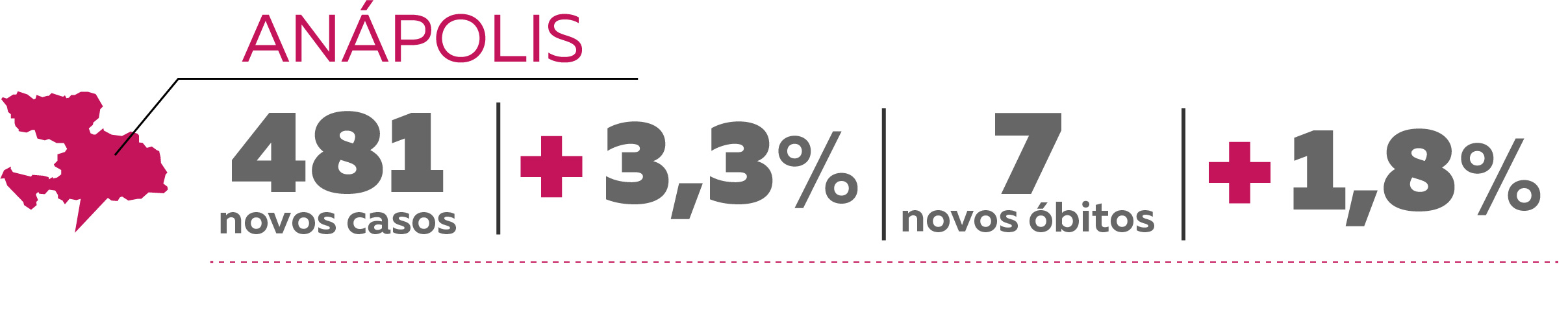 Em Anápolis, o número de casos de coronavírus na cidade saiu de 14.614 para 15.095, um crescimento de 3,3% no período. O percentual é maior do que o que foi notado no período anterior (2,6%). Foram registrados 7 óbitos no período e o crescimento foi de 1,8%. Na semana anterior o aumento foi de 1,9%.
