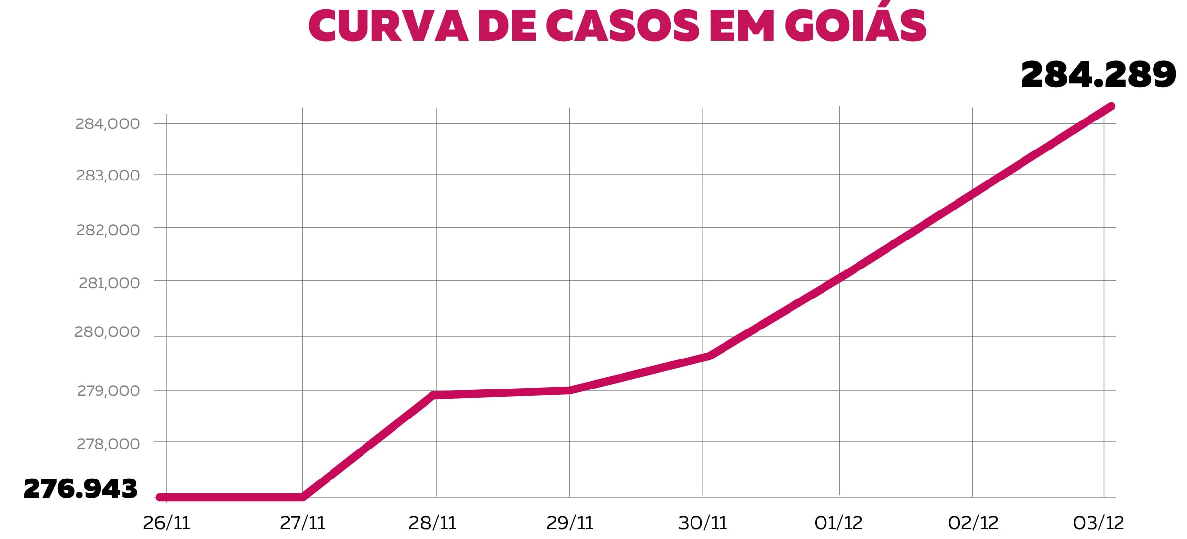 Os números mostram que o aumento de casos foi maior do que o registrado na semana passada. No último levantamento semanal feito pelo Mais Goiás, que apurou os dados registrados entre os dias 19 e 26 de novembro, o crescimento foi de 2%. A alta é menor do que o apurado entre os dias 12 e 19 de novembro, que registrou 1,9%.