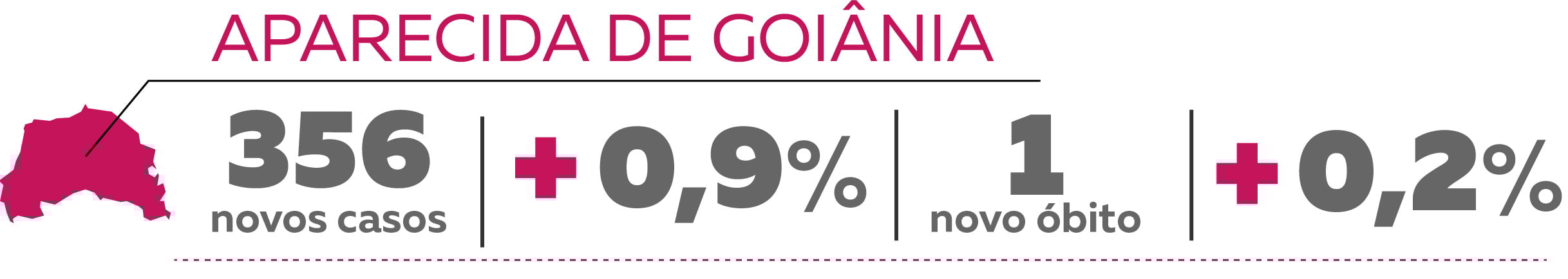 Em Aparecida de Goiânia foram confirmados 356 novos casos da doença em uma semana, um crescimento de 0,9%. Na semana passada o aumento foi de 1,2%. O total de casos agora é de 39.480. Foram registrados também 8 novos óbitos no município, um crescimento de 1,4%. No período anterior, o aumento foi de 1,6%.