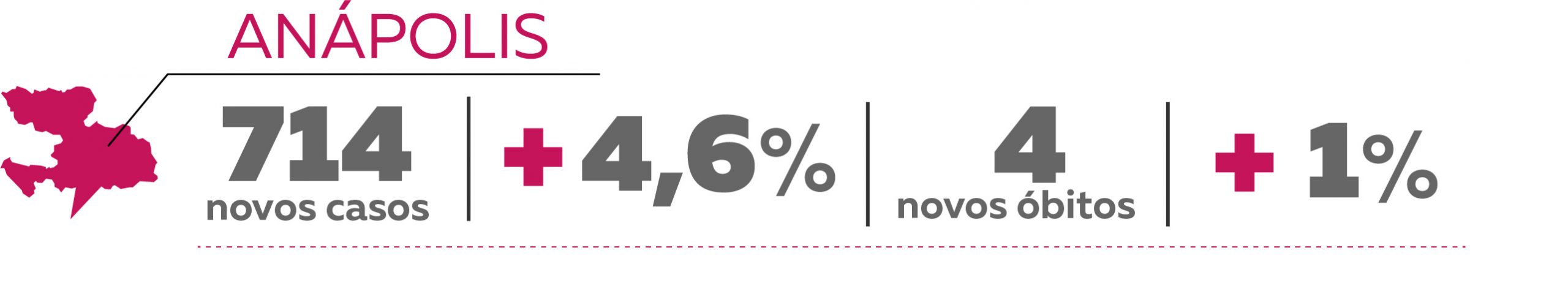 Em Anápolis, o número de casos de coronavírus na cidade saiu de 15.500 para 16.214, um crescimento de 4,6% no período. O percentual é maior do que o que foi notado no período anterior (2,7%). Foram registrados 4 óbitos no período e o crescimento foi de 1%. Na semana anterior o aumento foi de 2,1%.