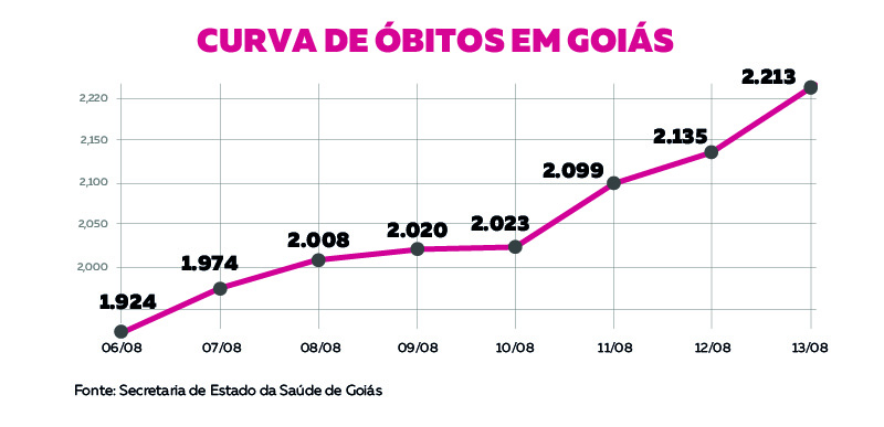Os números mostram que ou aumento do número de casos está estável em relação à semana passada. No último levantamento semanal feito pelo Mais Goiás, que apurou dados publicados entre os dias 30 de julho a 6 de agosto, o crescimento foi de 21,7%. A alta é menor do que o apurado entre os dias 23 e 30 de julho, que registrou 29,7%.