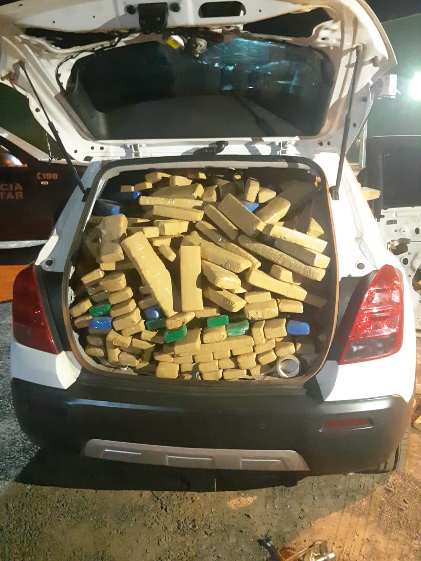 As drogas foram localizadas após compartilhamento de informações entre policiais militares, rodoviários federais e civis. Segundo a PM, os suspeitos utilizavam uma GM Tracker que havia sido roubada em Salvador para transportar a carga.