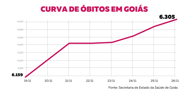 Os números mostram que o aumento de casos manteve-se estável em relação ao que foi registrado na semana passada. No último levantamento semanal feito pelo Mais Goiás, que apurou os dados registrados entre os dias 12 e 19 de novembro, o crescimento foi de 1,9%. A alta é menor do que o apurado entre os dias 5 de outubro e 12 de novembro, que registrou 2,6%.
