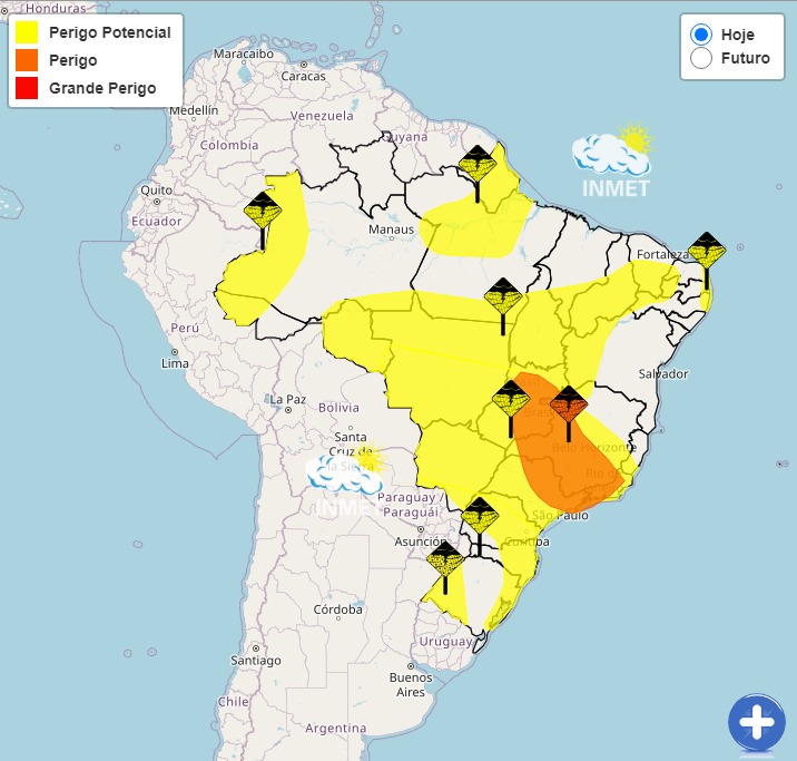 Segundo a coordenadora do Instituto Nacional de Meteorologia (INMET) Elizabeth Alves, todo o estado de Goiás em está em alerta amarelo para as pancadas de chuva que podem chegar a 30mm em uma hora. “As condições estão mais favoráveis para as pancadas mais intensas. A tendência é que esse canal de umidade que passa por Goiás permaneça até o fim de semana. Ele pode trazer pancadas de chuvas e, pontualmente, rajadas de vento mais intensas”.