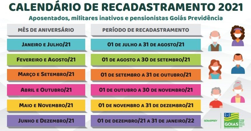 O Goiás Previdência (GoiasPrev) confirmou que retomará, a partir do dia 1º de julho, o recadastramento anual obrigatório, mas conhecido como “prova de vida”, para aposentados, militares inativos e pensionistas do Poder Executivo, da Polícia Militar e do Corpo de Bombeiros Militar. O procedimento estava suspenso desde março deste ano, em decorrência da pandemia.