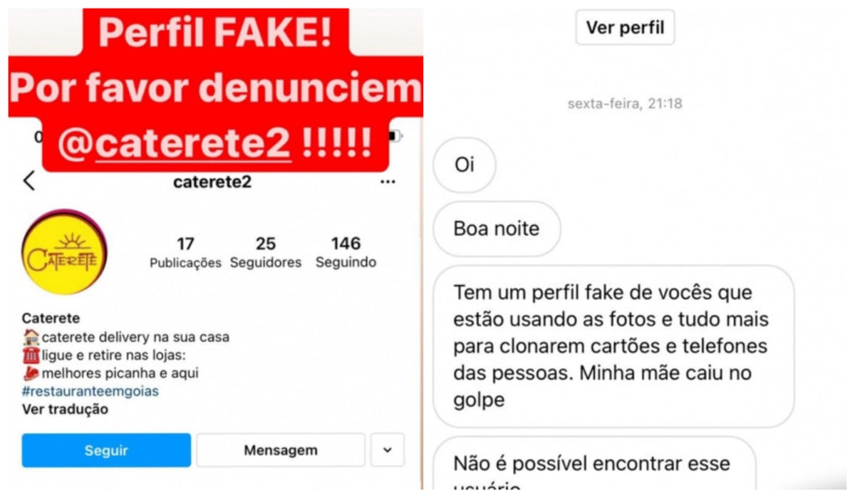O dono do Cateretê afirma ainda que um cliente chegou a entrar em contato com ele, contando que sua mãe havia sido vítima desse golpe. “Já teve casos de termos mais de uma centena de pessoas denunciando, mas o Instagram nada faz”, afirma.
