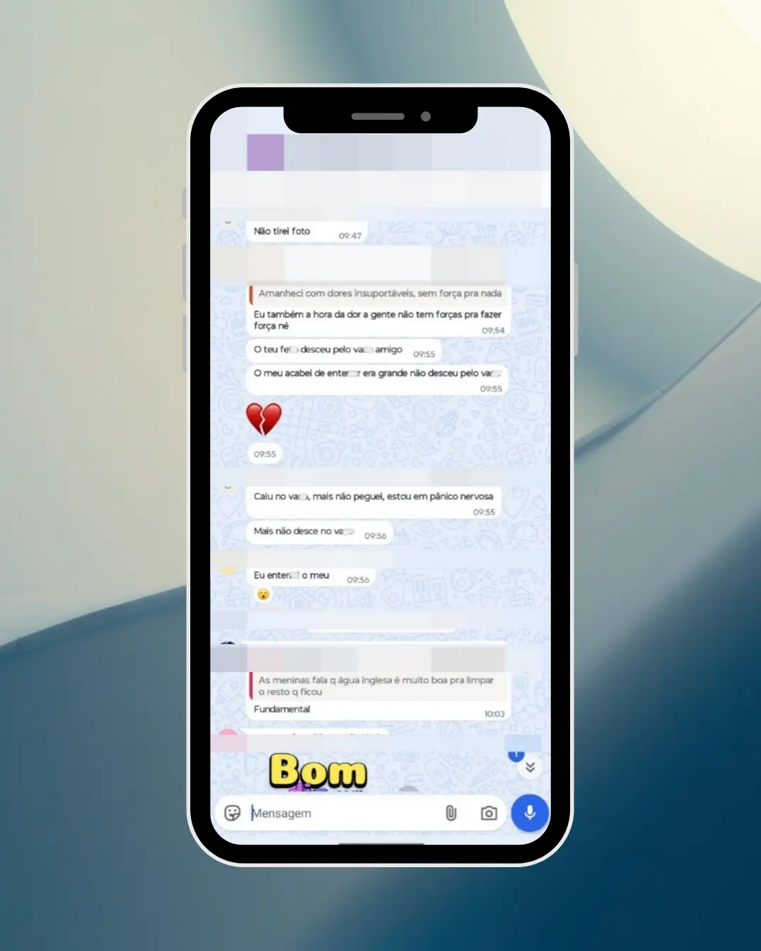 “O teu feto desceu pelo vaso. O meu acabei de enterrar. Era grande, não desceu pelo vaso”, narra uma pessoa no grupo. “Caiu no vaso, mas não peguei, estou em pânico, nervosa”, disse outra. Em mais relatos, uma participante revela que sentiu uma dor “insuportável” por duas horas após o uso do medicamento. “Saiu meninas. Depois de horas e horas com dor, saiu. O feto inteiro. Agora não sei o que fazer com ele, porque já está grande”, detalhou mais uma participante. “Eu não sangrei nada. Só um pouquinho, faltando cinco minutos para sair, mais ou menos.”