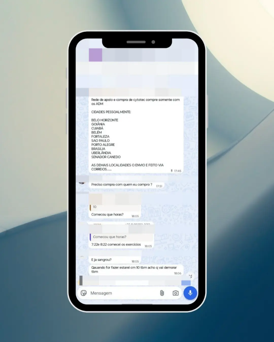 Uma pessoa procurou o Mais Goiás, nesta quinta-feira (19), para revelar a sua inclusão em grupo de WhatsApp que funciona como comércio ilegal de medicamentos abortivos no Brasil, com entregas pessoais em Goiânia e Senador Canedo. As mensagens entre as participantes, contudo, revelam dor e isolamento, com mulheres que arriscam a vida em procedimentos complexos para interromper a gestação.
