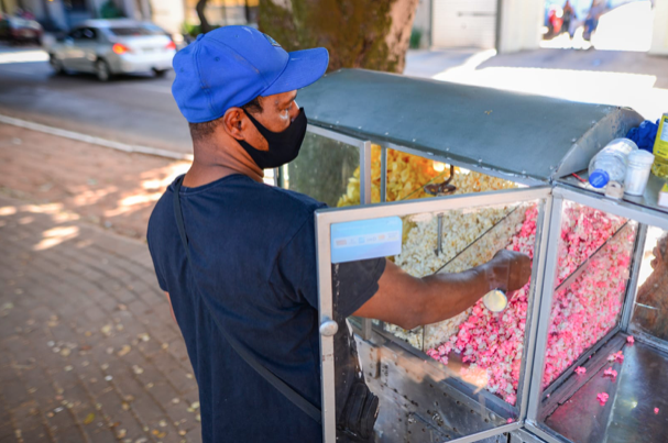 Além de Edmar, outras três pessoas sobrevivem com a renda que ele tira da pipoca