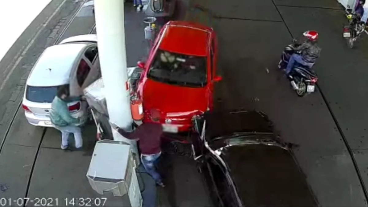 Em um vídeo registrado por câmeras de segurança é possível ver que o carro conduzido pelo homem atravessa todo o posto de combustíveis e acerta um outro veículo que estava parado. Em seguida, atinge a bomba. O frentista que estava no local percebe a batida e se protege atrás de uma pilastra.