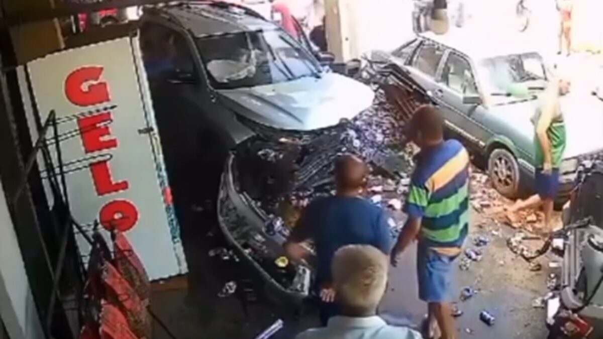 Com a colisão, um dos veículos acabou invadindo a calçada e atingiu de forma violenta uma distribuidora de veículos. Um homem foi arremessado para dentro do local. Além dele, um outro homem e duas mulheres também ficaram feridos no acidente. O dono do estabelecimento, que não estava no local, estima prejuízo de R$ 18 mil reais.