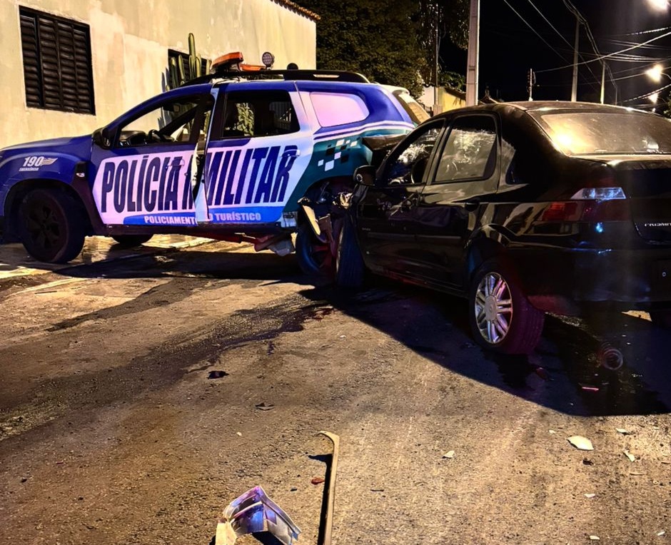Homem é baleado 7 vezes após tentar agredir a ex e jogar carro contra PMs em Caldas Novas