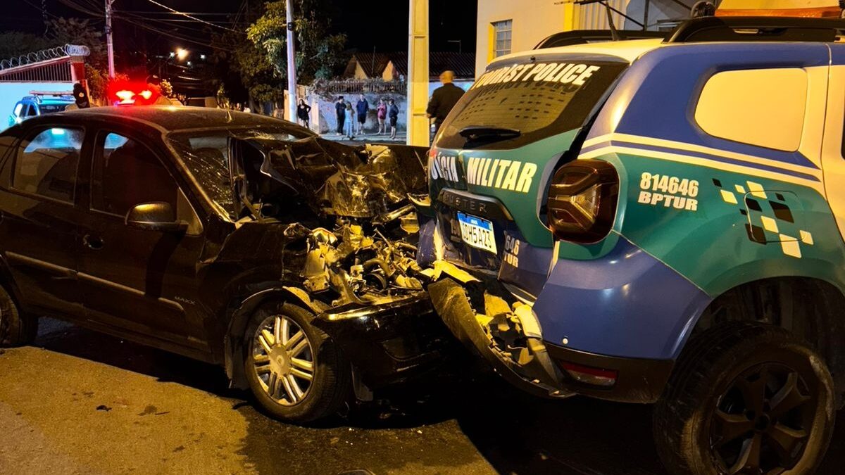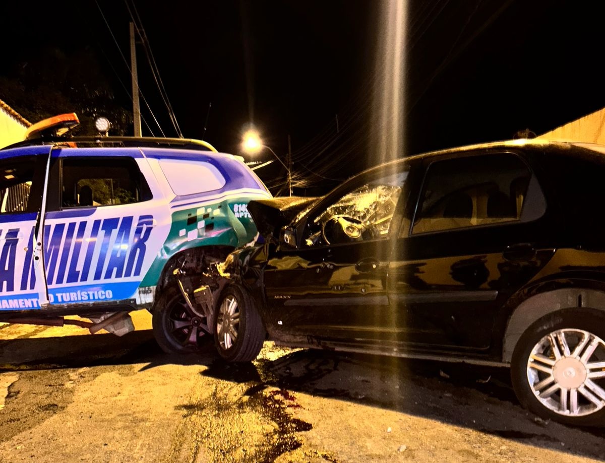 Um homem foi baleado após bater o carro que dirigia no portão da casa da ex-mulher e depois jogar o veículo contra uma viatura da Polícia Militar (PM) na madrugada desta quinta-feira (26/6), em Caldas Novas. A suspeita é de que ele estaria bêbado e sob o efeito de drogas.