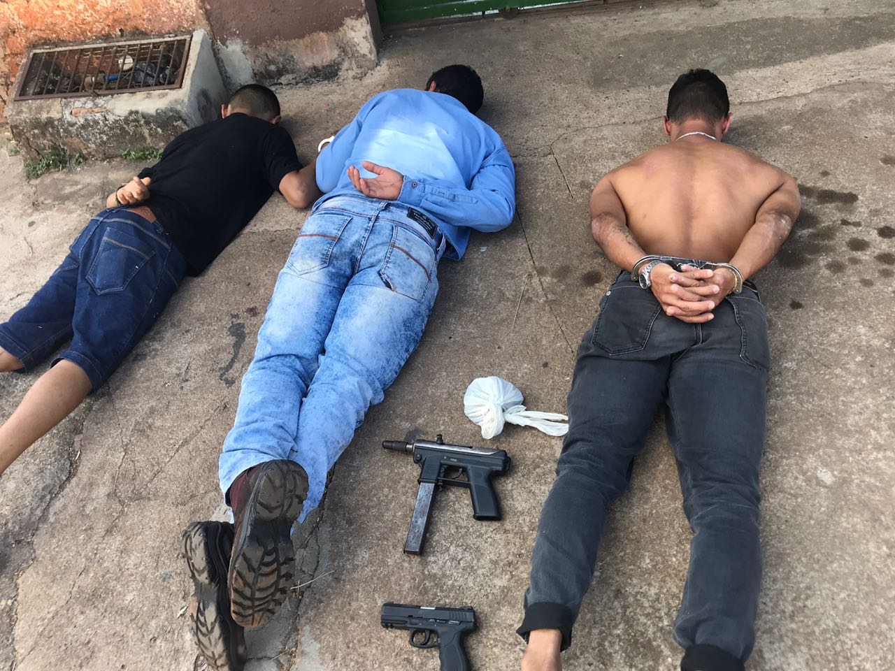 Houve uma perseguição e a equipe do 9° BPM conseguiu prender três suspeitos, que não tiveram a identidade revelada, mas que estavam em posse de uma pistola .40 e uma submetralhadora. A prisão aconteceu por volta das 12h40 no Jardim Guanabara, na região Norte da capital.
