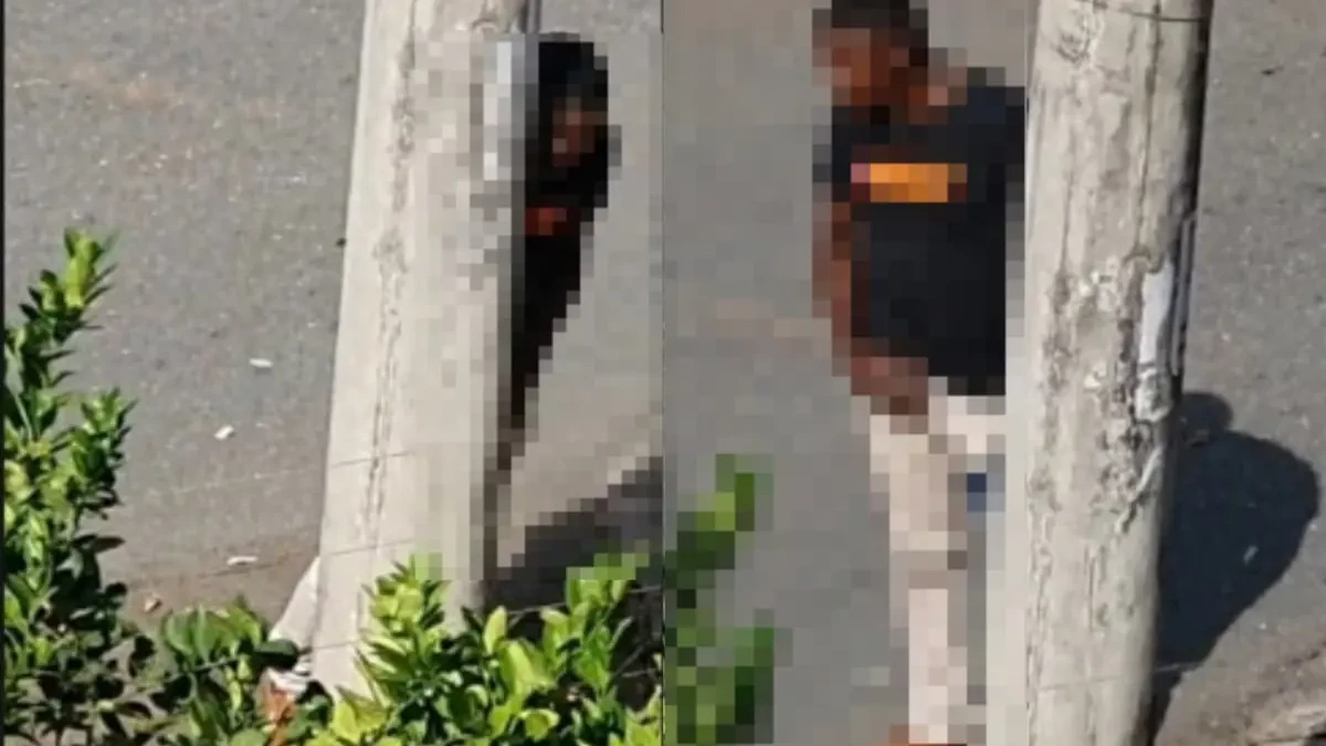 De acordo com testemunhas, o suspeito chegou ao local por volta das 9h e se posicionou atrás de um poste de iluminação para observar uma jovem sentada em um banco na área interna do prédio. “Ele ficou ali escondido atrás do poste, olhando fixamente para a moça. Foi rápido, mas deu para ver claramente o que ele estava fazendo”, relatou o morador que gravou o vídeo da janela de casa.