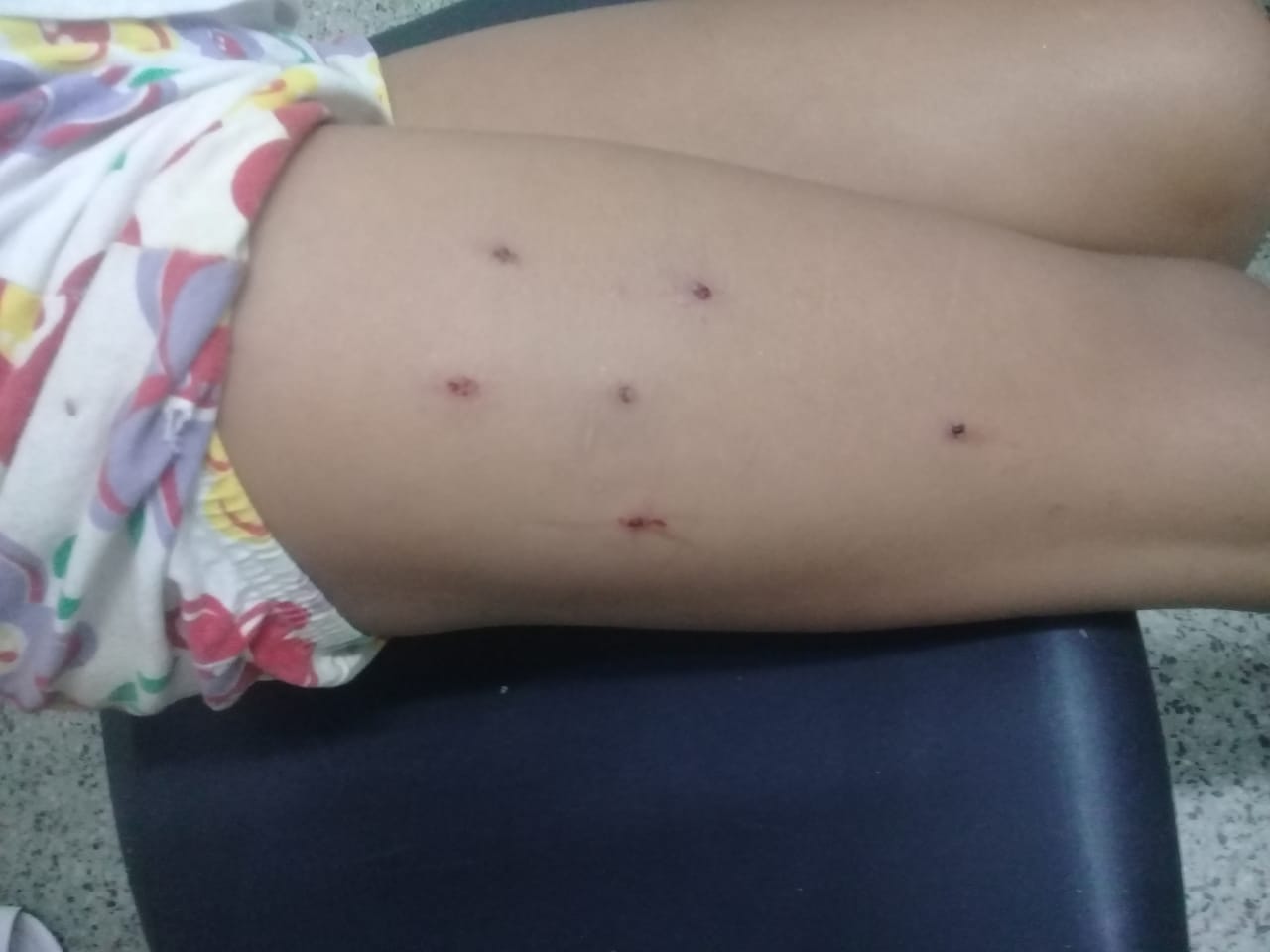 A corporação foi até o local e encontrou a criança com os ferimentos na coxa da perna direita. Em uma imagem compartilhada pelos policiais, é possível ver que a criança foi alvejada por pelo menos seis disparos.