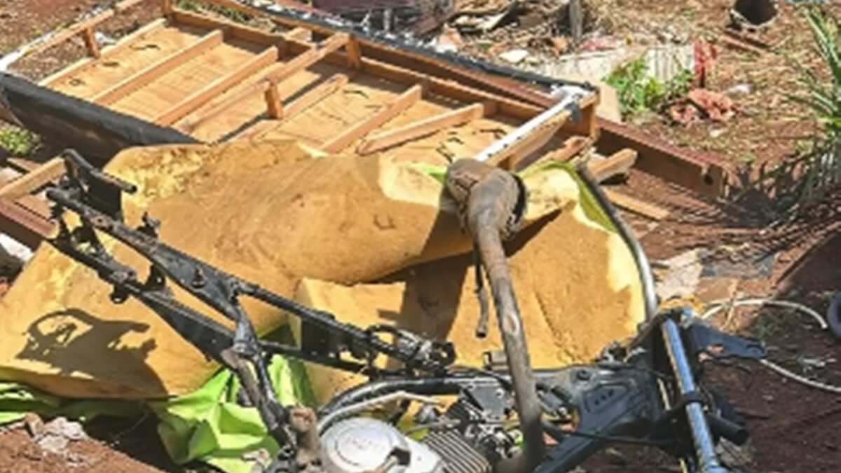 Dentro do imóvel foram encontradas várias peças de motos prontas para serem comercializadas. Também foi encontrado um chassi de uma motocicleta proveniente de roubo. A moto furtada em 2023 e que ele fazia o desmanche será entregue ao proprietário.