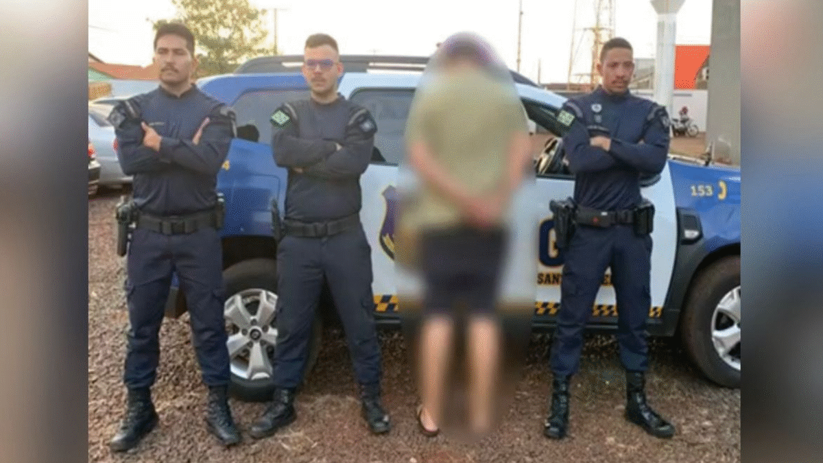 A partir dessas informações, as equipes iniciaram o patrulhamento e localizaram o veículo no Bairro Arantes. Durante a abordagem, os agentes verificaram que o suspeito estava sem camisa e com a bermuda parcialmente abaixada, indicando que havia acabado de se vestir, reforçando a versão dos moradores que denunciaram o caso.