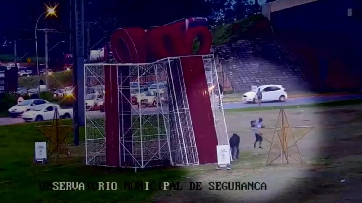 Imagens de monitoramento mostram a ação de dois suspeitos. Um deles carregava uma mochila, enquanto o outro tentava disfarçar, fingindo fotografar a decoração natalina. Em seguida, o comparsa se agachou e puxou uma grande quantidade de fios da estrutura, colocando, em seguida, a fiação dentro da mochila.