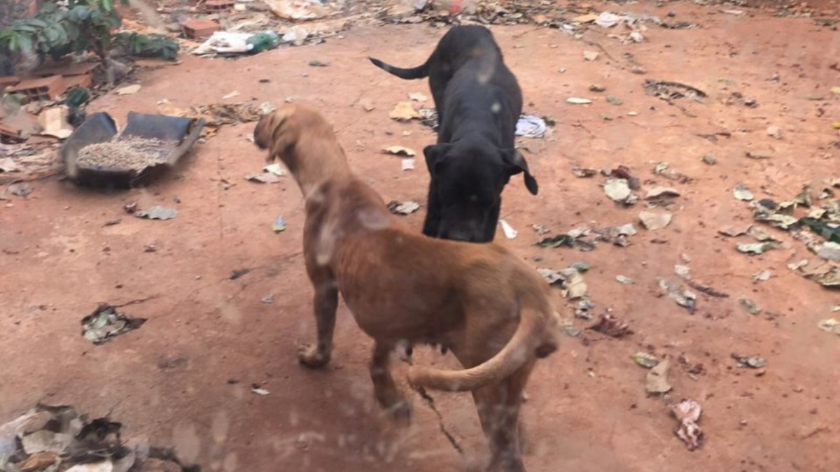 Uma médica veterinária esteve no local e prestou atendimento aos cachorros. A profissional constatou que os dois estavam desnutridos, em um local de risco à saúde, vivendo em ambiente insalubre, impróprio para o cuidado dos animais.