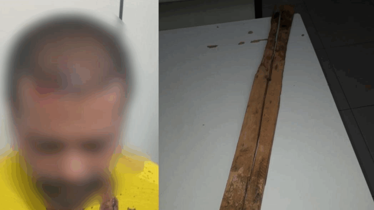 Durante patrulhamento, ele foi localizado. Durante depoimento inicial, confirmou a agressão ao vizinho. O suspeito conduziu os policiais até sua casa, onde o pedaço de madeira usado foi encontrado.