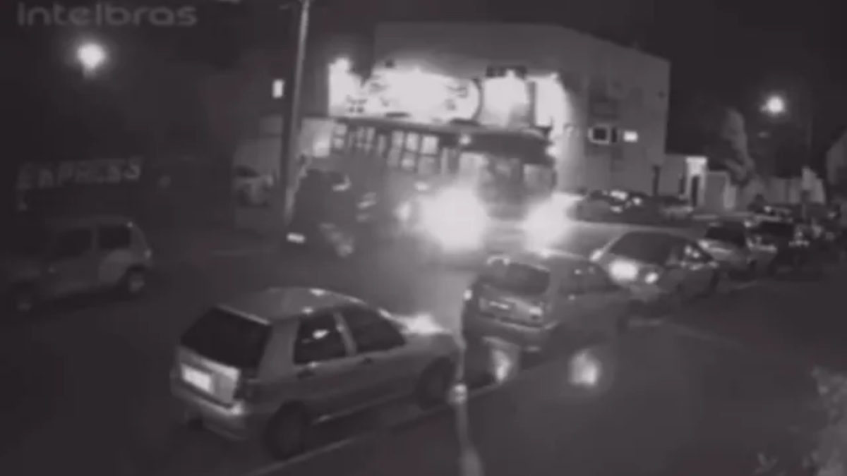Um homem furtou um ônibus de transporte coletivo e bateu contra carros estacionados próximo ao terminal Maranata, em Aparecida de Goiânia. Câmeras de segurança registraram o momento em que o ônibus faz uma curva e bate nos veículos. O caso ocorreu no último sábado (14).