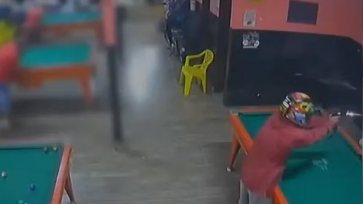 O rapaz chega a usar o taco de sinuca na tentativa de se defender, mas não adianta. Um homem que estava também no bar chega a entrar em luta contra o atirador, que foge do local.