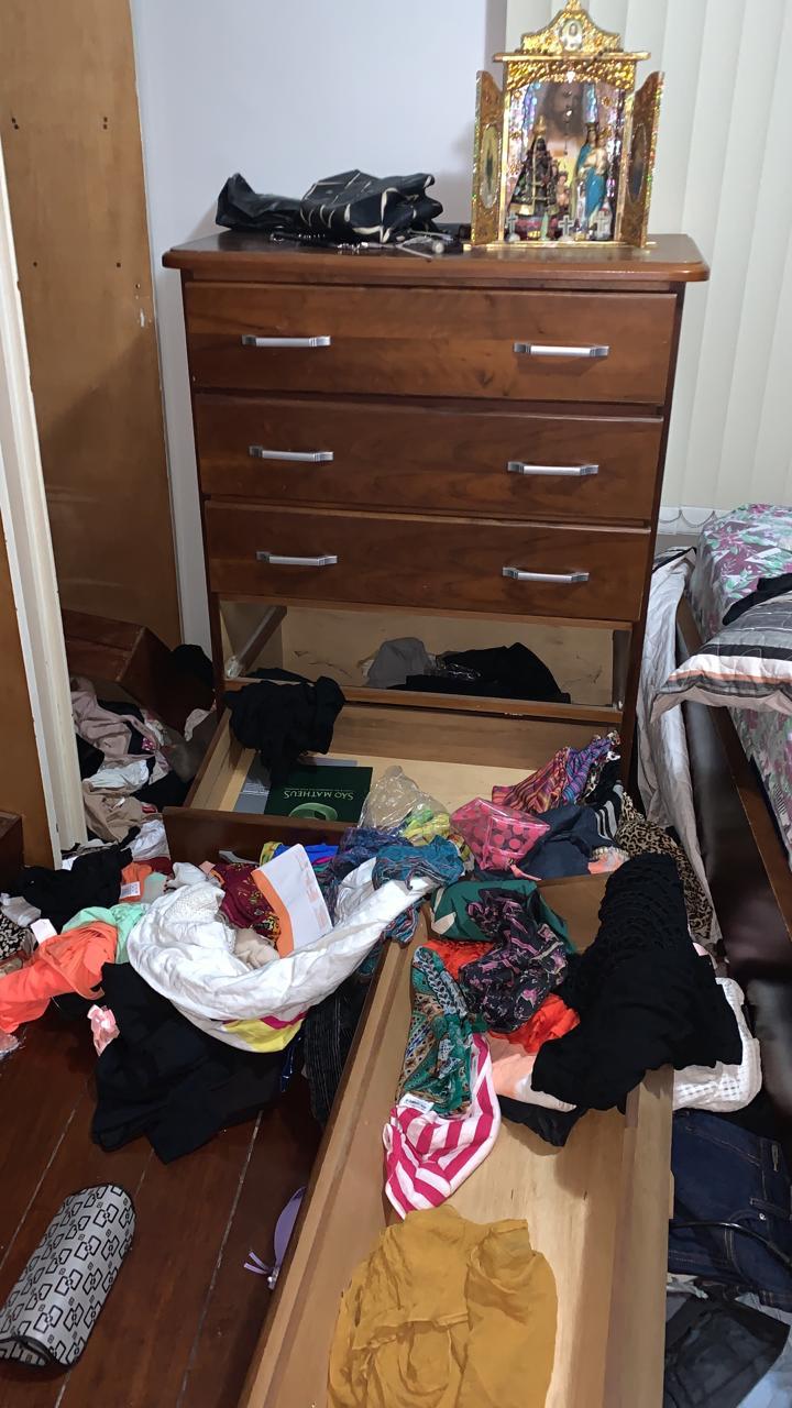 A vítima, que mora sozinha, chegou do trabalho horas depois e encontrou todo a residência revirada. Relógios, dinheiro, colares e até um anel de noivado foram levados