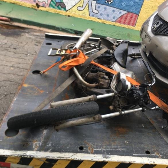 Após verificação, o sistema usado pela SMM identificou que a motocicleta em questão estava com a documentação vencida, além da placa de identificação fora dos padrões regulamentados pelo Código de Trânsito Brasileiro (CTB). Diante da constatação das irregularidades, o dono da moto, munido de uma barra de concreto, começou a destruir o veículo.