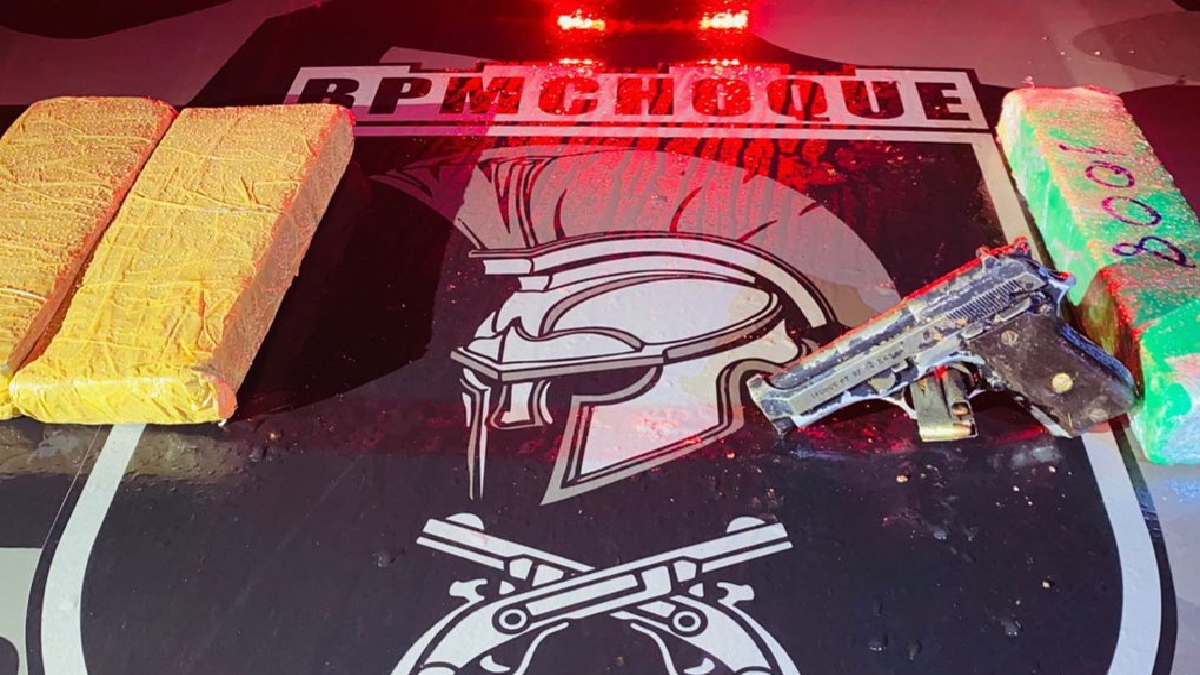 Os militares apreenderam a arma do suspeito, que é calibre 380. Em seguida, a equipe também realizou uma varredura na casa. Assim, além da arma, encontraram três peças de maconha.